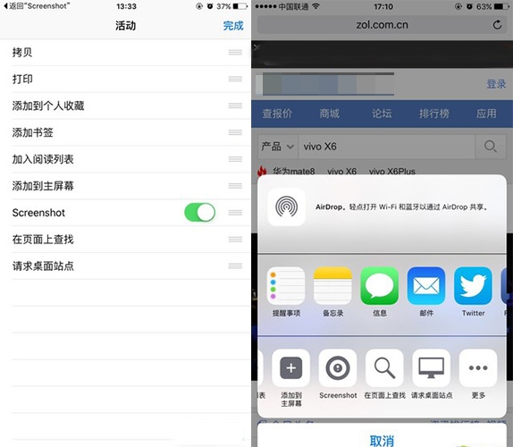 下載軟件後會提示打開Safari浏覽器,點擊中間的分享按鈕就可以將“Screenshot”功能打開,之後想要通過圖片分享網站類容就可以截長圖了,裡面有兩種模式,full page是長圖。