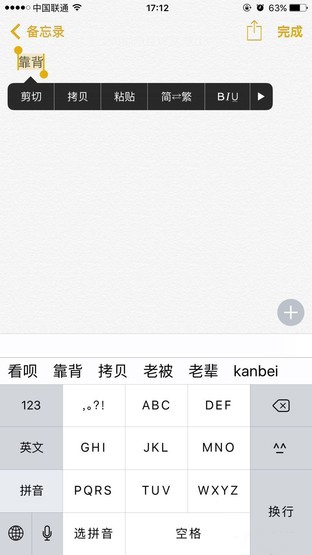 在iOS中只需點按漢字,選中你所需要查明的詞語,在鍵盤上方就會出現很多種詞語。在拼音26鍵的情況下,就會出現已選漢子同音替換詞了。