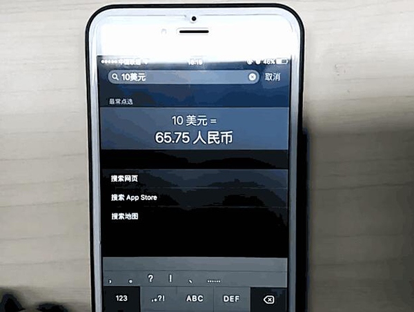 主屏幕下拉開啟Spotlight搜索,直接輸入“23*23”後,即可在下方看到相應的計算結果。如果輸入“10美元”,則會直接顯示根據當前匯率換算後的人民幣數額。