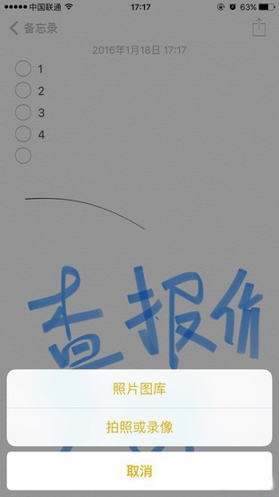 新的備忘錄應用功能更加完善,在“素描”模式下,用戶可以得到諸如鉛筆、記號筆等筆觸樣式,顏色包括黑、灰、藍、黃等8種,同時還能夠使用直尺、橡皮擦這樣的輔助工具。另一方面,全新的備忘錄還支持插入圖片、用戶拍攝的照片甚至是視頻,展現形式空前的強大。