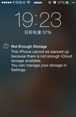 解決方法:進入設置->iCloud->儲存空間->管理存儲空間,刪除沒必要的備份。
