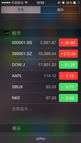 解決方法:下拉通知中心,點擊編輯,移除股市即可。