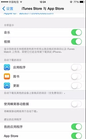 方法:進入設置->iTunes Store和App Store,關閉“自動下載的項目”下的所有開關。