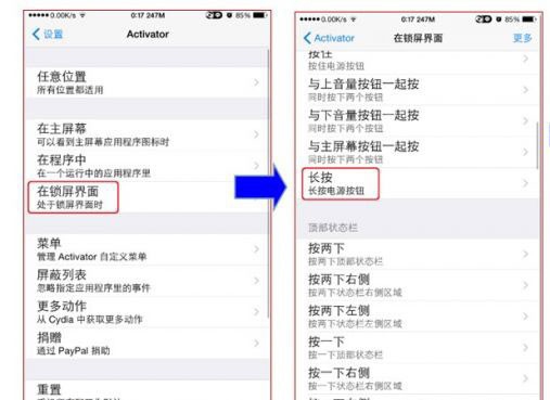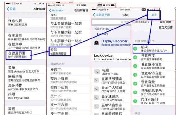 1、Activator→在鎖屏界面→按下下鍵(下音量鍵)→鈴聲(強烈建議網友選取尖銳刺耳且可長時間播放的警報音)或播放(繼續iPod播放)朗讀功能