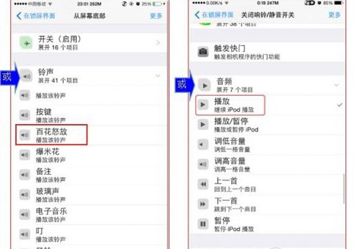 2、Activator→在鎖屏界面→關閉響鈴/靜音開關→鈴聲(強烈建議網友選取尖銳刺耳且可長時間播放的警報音)或播放(繼續iPod播放)或朗讀功能(詳見下方特別創意)