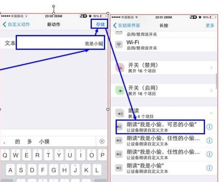 激活朗讀功能的設置:鎖屏界面→長按(電源按鍵)→右上角“更多”→點擊 朗讀→輸入需要朗讀的文本(下面胡亂寫了一段搞笑段子,大家參考)→點擊右上角完成→下滑選擇朗讀項下剛才輸入的文本。