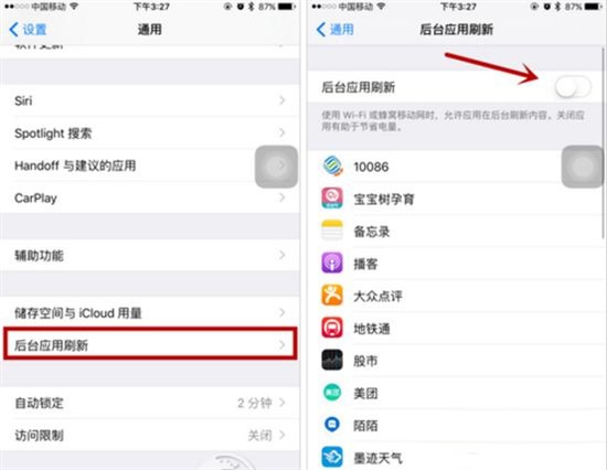 設置方法:打開設置-通用-後台應用程序刷新-關閉後台應用刷新功能。