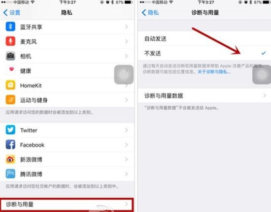 設置方法:打開設置-通用-關於本機-診斷與用量裡-選擇“不發送”。