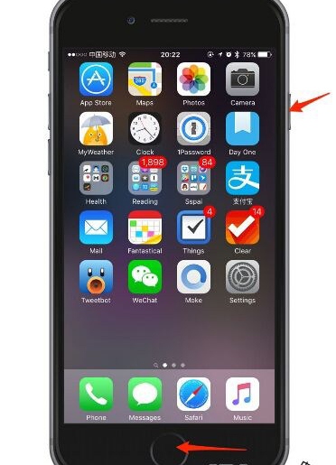 或者是直接同時按住電源鍵和主屏幕按鈕(Home 鍵)不放,待到屏幕關閉並出現 Apple logo 時松開。
