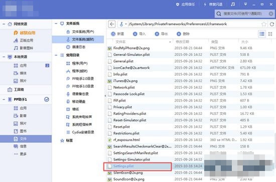 iOS 9越獄設備連接電腦版,找到【文件-文件系統(越獄)】,將以下路徑的文件一個一個刪除(以Twitter為例);