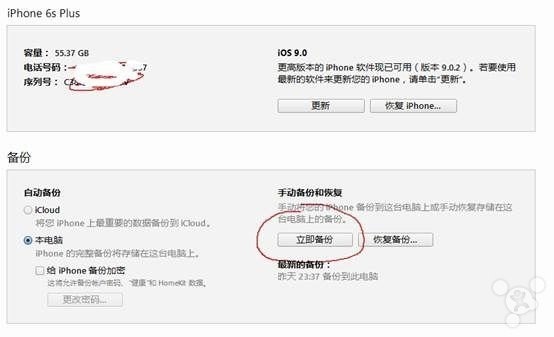 3.使用iTunes給新款iPhone進行備份,方法跟第一步相同。