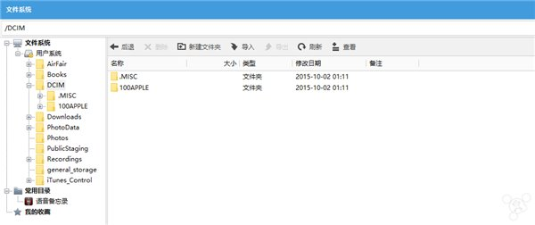7.打開iTools,利用文件管理功能進入/DCIM,然後就會看到100APPLE的文件夾。