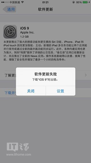 9月17日凌晨消息,今天凌晨1點,蘋果如約推送了iOS9正式版更新,想必“小水管”較粗的朋友已經享受上了iOS9正式版,但還是有不少網友反映稱更新失敗,提示下載出錯,遇到這個問題,我們該怎麼辦?