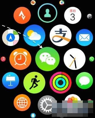 首先請激點亮 Apple Watch 屏幕,按下右側的“數碼皇冠”按鈕,回到主屏。