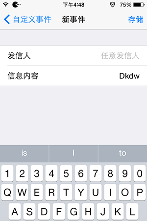 進行【設置】-【Activator】-【任意位置】,點擊右上角的更多,則能夠看到一個【收到信息】的選項,在其中設置發信人以及信息內容, 我們暫時將信息內容設定成“dkdw”,確定保存返回至【任意位置】界面,一直往下翻,我們就能夠看到你剛才的收到信息的設置。