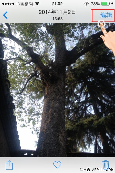 第一步,在照片應用中,浏覽照片時,點擊右上角“編輯”按鈕。