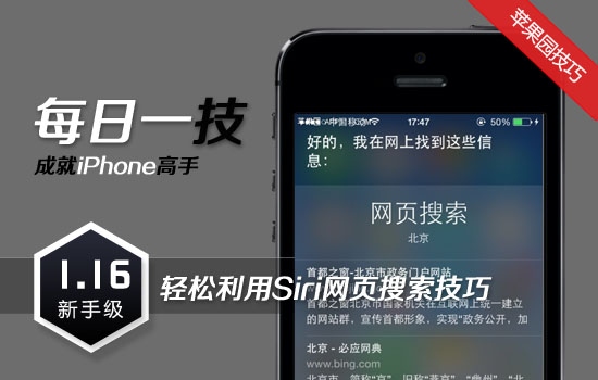 【蘋果園技巧】iPhone是蘋果公司推出的智能手機,精美的外形和智能化的功能,深得不少果粉的喜愛,已成為比較流行的街機。為方便大家了解和熟悉iPhone功能和技巧,蘋果園特別推出iPhone“每日一技”專欄。下面為大家介紹輕松利用Siri網頁搜索技巧。