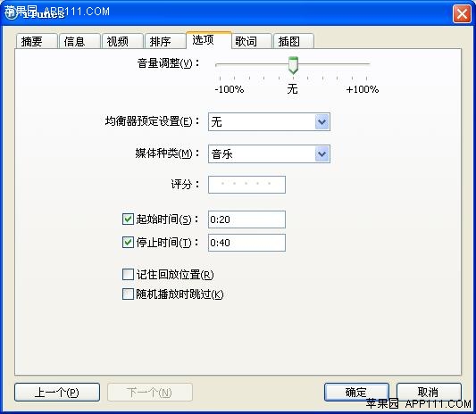 第三步,在彈出的窗口中,點擊“選項”,再設置音樂的起始時間和停止時間,即選擇鈴聲的音樂段,並確定。