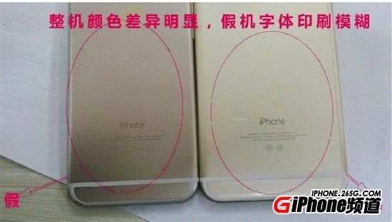 比如:真假手機整機的顏色存在明顯差異;Home健、音量鍵、開關機鍵等按鍵假機做工粗糙且按起來缺乏彈性;揚聲器、充電器孔、耳塞孔都是模擬的。手機背部的攝像頭、閃光燈存在明顯差異,背後的印刷字體也是模糊不堪。