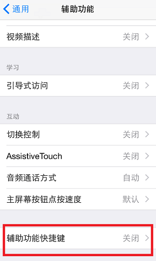 返回上一頁,下拉找到“輔助功能快捷鍵”