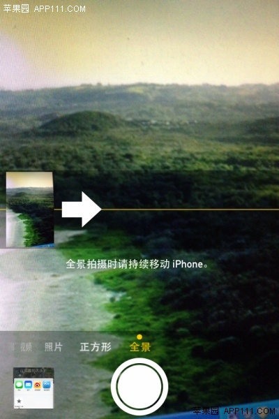 第一步,打開iPhone中的相機應用,切換到全景拍照模式。
