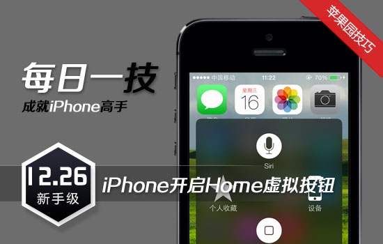 iPhone是蘋果公司推出的智能手機,精美的外形和智能化的功能,深得不少果粉的喜愛,已成為比較流行的街機。為方便大家了解和熟悉iPhone功能和技巧,蘋果園特別推出iPhone“每日一技”專欄。下面為大家介紹用iPhone開啟Home虛擬按鈕技巧。