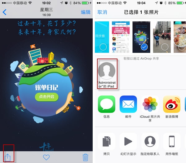 蘋果用戶可以使用AirDrop功能跨越Mac和iOS設備進行文件傳輸,這也是蘋果在提升用戶體驗的一大亮點。那麼,具體如何使用AirDrop功能呢?以下通過一張照片在iPhone和iPad之間建立共享為例說明: