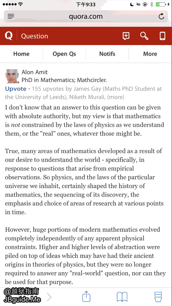 為了能夠具體地選取我們想要的某句話的其中一個詞,進而選擇整句話看,我們很多時候需要去“放大網頁”這個操作。但是這個操作,在有些網站不能做到,比如在 Quora 會出現這樣的結果: