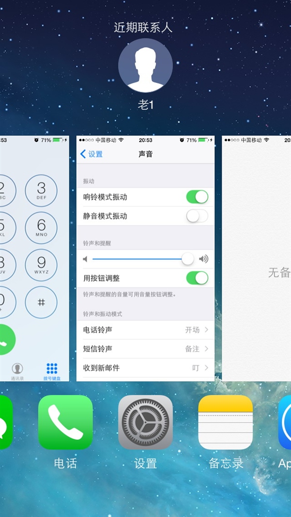 在iOS8系統環境下連續按下iPhone的Home鍵後也會出現應用程序的切換界面,只是在這個界面的頂部會多出一個最近聯系人的列表信息。如果不想出現這個信息怎麼辦呢?