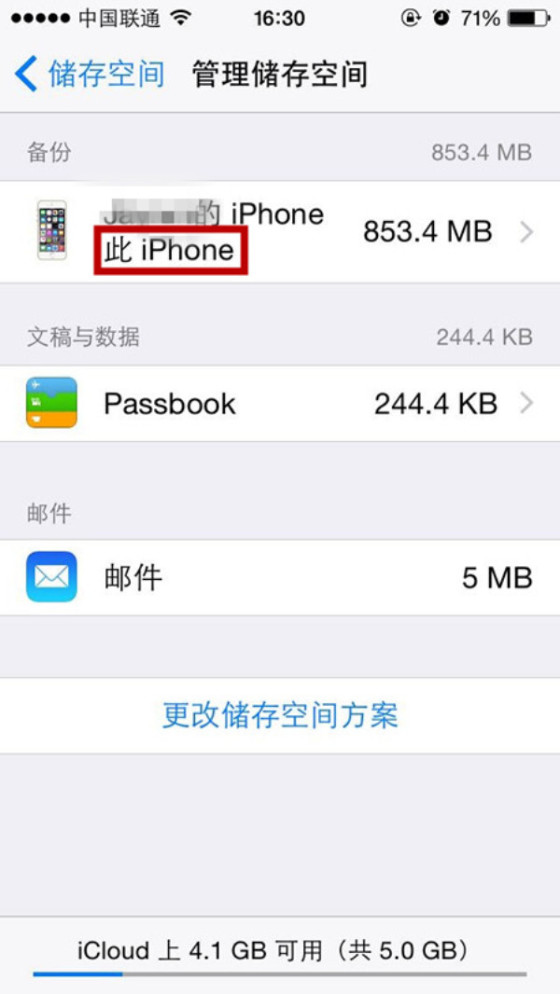 方法:設置——iCloud——儲存與備份——管理儲存空間——此iPhone