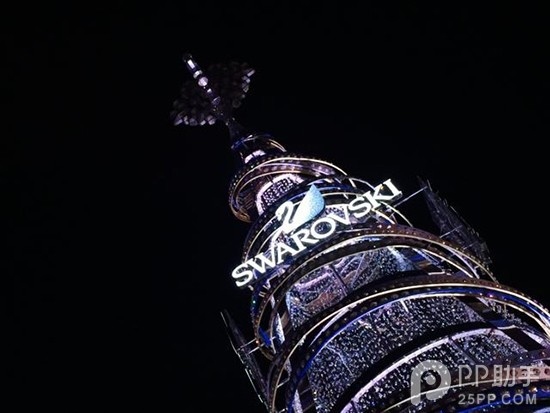 就比如說這顆由施華洛世奇水晶做成的聖誕樹,樹干部分的設計基本上保持一致,只有在樹的頂端附近會有它的Logo.那麼,大家就果斷放棄拍全景,將鏡頭拉近拍攝最重要的地方。