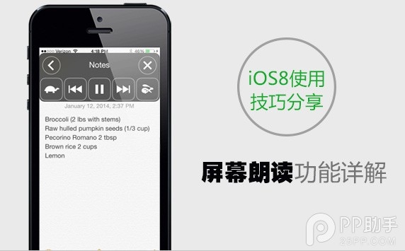 在以前的iOS系統中,用戶只能選擇一段文字進行語音朗讀,現在iOS8系統新增了朗讀屏幕功能,可以輕松朗讀整個屏幕的內容。閉上眼也能聽新聞聽小說!
