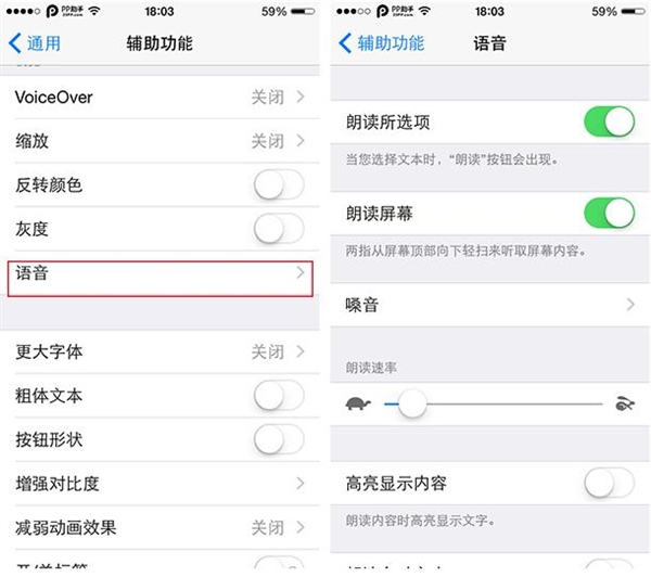 為了更好的服務用戶,蘋果還貼心的增加了高亮顯示內容功能。它可以使設備一邊朗讀一邊讓所讀的內容用藍背景色標記出來,簡直是一個智能的字幕組。如果家裡有小朋友老喜歡問你手機這個字怎麼念的話,直接讓他們試試這個功能好了。屏幕朗讀功能還是最適合那些喜歡看書看小說的人。