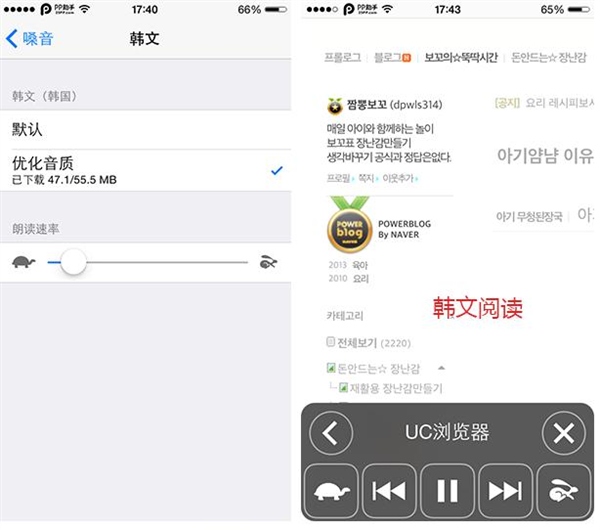 做一個全球性企業,蘋果手機上提供多種語音閱讀看上去確實非常霸道。以下為韓文為大家示范,至於韓文聽起來效果怎麼樣,大家只能自己實踐了才能聽到了。