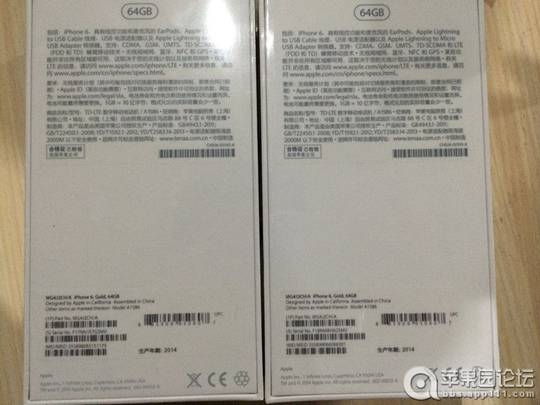 這個很簡單,但是很多壇友還是不會鑒別。全新原封機,包裝和後封的包裝都不同,不細看看不出來。如果大家的全新原封機包裝膜還在,可以拿出來看一下。在反光的情況下。會有很整齊的一排排氣孔。很整齊。而後封的肯定莫有。而全新市場機絕對百分百都是M開頭的。5s MF 5 md 6 MG。不看型號,從外包裝很難看到不是原封全新機。那麼拆開。看配件。激活後看激活日期是不是滿足364天。。所以。最簡單的。是從型號上看。雖然官翻機也是配件原裝。但是型號絕對不會是M開頭的。。下面看看原封港版和行貨6以及6P。