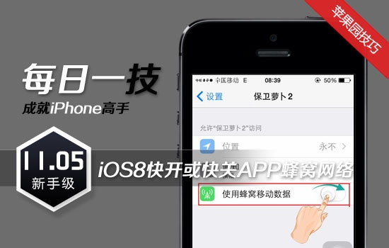 iPhone是蘋果公司推出的智能手機,精美的外形和智能化的功能,深得不少果粉的喜愛,已成為比較流行的街機。為方便大家了解和熟悉iPhone功能和技巧,蘋果園特別推出iPhone“每日一技”專欄。下面為大家介紹iOS8系統快開或快關APP蜂窩網絡。