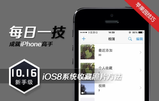 iPhone是蘋果公司推出的智能手機,精美的外形和智能化的功能,深得不少果粉的喜愛,已成為比較流行的街機。為方便大家了解和熟悉iPhone功能和技巧,蘋果園特別推出iPhone“每日一技”專欄。下面為大家介紹iOS8系統收藏個人照片的方法。