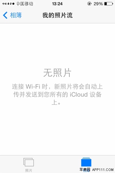 第二步,在照片應用頁面,點擊下方“相薄”按鈕,看到“我的照片流”選項。
