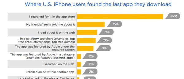 根據 MobileDevHQ 所做的調查, 有 47% 的使用者是通過單純搜索 App Store 來尋找他們要下載的 App(比被精選還多, 精選只有 9%)。 原本我們只能通過 app 標題與關鍵字來建立搜索目標, 現在我們也要重新思考 app 描述是否切合主題, 是否有精准的描述使用者所需要尋找的內容啰!(你可以在 Apple 開發者網站, 找到如何優化搜索的細節說明:http://t.cn/RSkRkab)