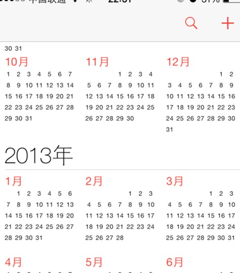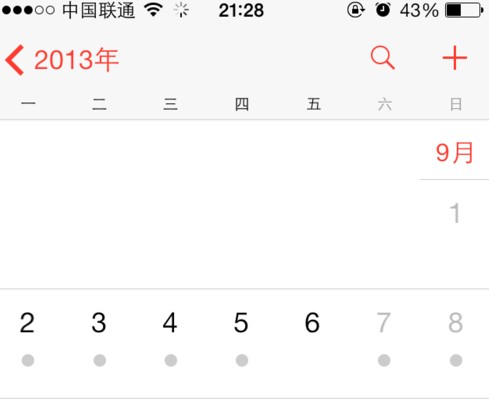 2、ios7沒有日歷列表了但我們可以直接使用“搜索” 來查看日歷事件了。
