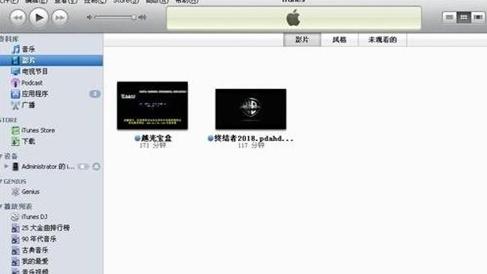 2:這樣電腦蘋果手機就連接電腦成功了,現在我們點擊"影片圖標",然後點擊"文件菜單"="文件添加到資料庫"。