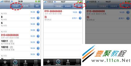 圖標進入iPhone電話撥打界面後點擊“通話記錄”,進入通話記錄列表界面。 2.默認通話記錄為“全部通話”記錄,包括打入、打出和未接電話,其中未接電話將紅色字體標注。 3.點擊“未接來電”按鈕,將顯示未接電話記錄。 4.如需清除所有通話記錄,點擊“清除”按鈕。