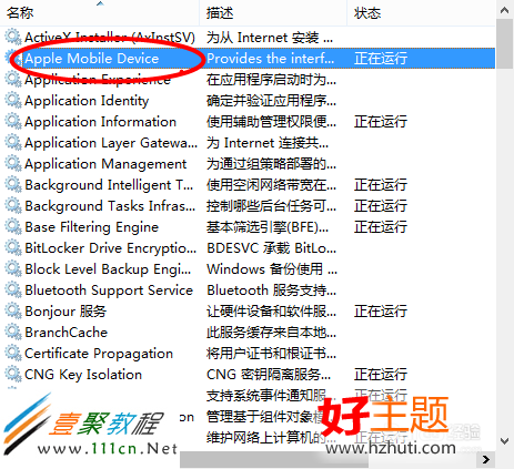 三:在應用程序服務中我們找到Apple Mobile Device,選擇後按右鍵,選擇“屬性”