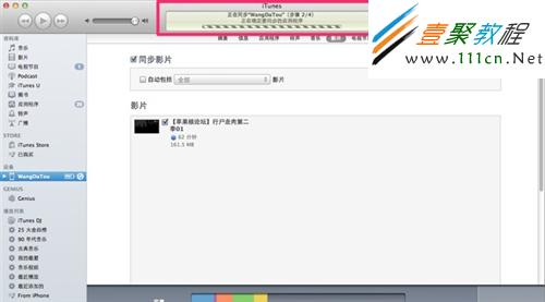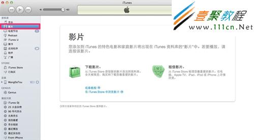 1.將設備連接到你的電腦,在iTunes左側列表裡點擊影片。