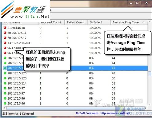 為了方便大家查看,我關閉了一些列,只留下相對重要的來給大家展示,在這些測試結果中我們需要選擇平均響應時間最短的IP地址,這樣我們下載的速度也就越快。