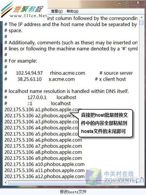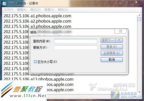 之前我們提到了iTunes請求的下載服務器域名是在a1-a2000之前浮動的一個地址,所以我們要建立2000個映射,當然一個一個輸入太麻煩了,在壓縮包中有一個批量替換用的文本本件。