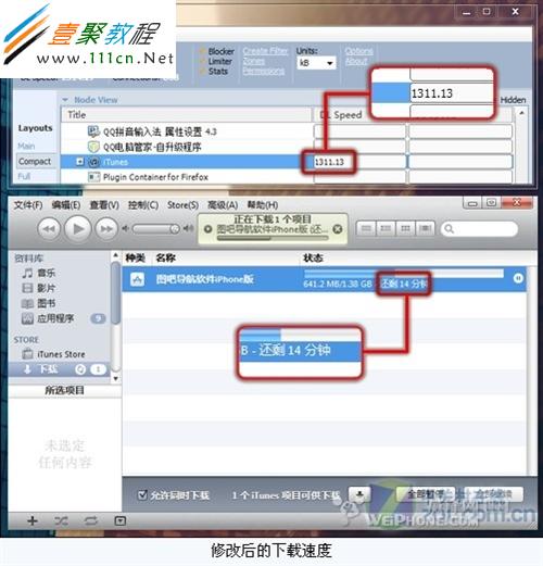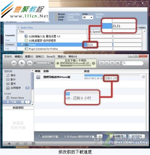 我們之前做了這麼多到底效果怎麼樣呢?俗話說是騾子是馬拉出來溜溜,我們還是用真實的下載記錄圖片來說明一下吧。我們選擇NetLimiter作為輔助軟來查看一下iTunes的真實下載速度。