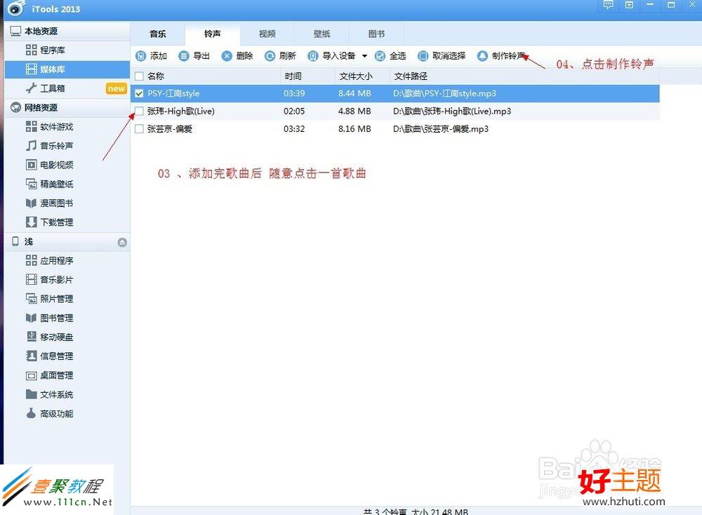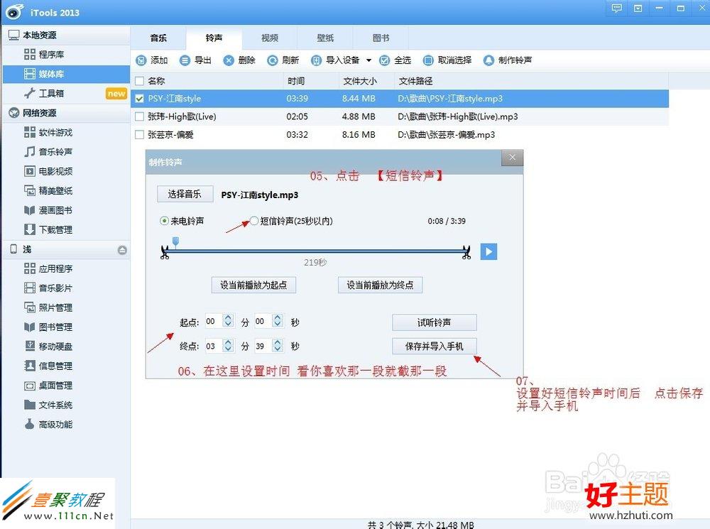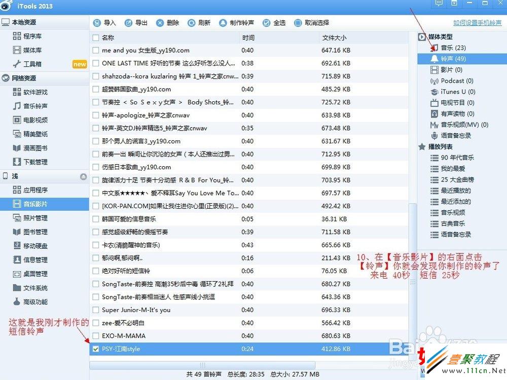 如果你不知道制作鈴聲我們可以百度去下載iphone鈴聲,然後再利用itunes同步到你的iphone手機中,再我們在設置中設置鈴聲即可了。