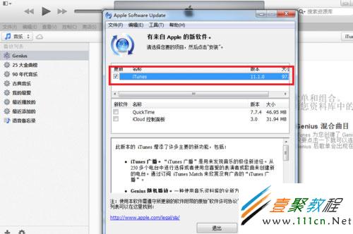 3)檢查到有來自Apple的新軟件,我們只勾選itunes單獨的一個更新。然後點擊安裝1個項。(如下圖所示)