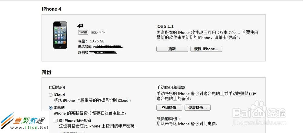 需要在電腦上安裝itunes,然後iphone4鏈接上電腦。點開圖上圈裡邊的東西